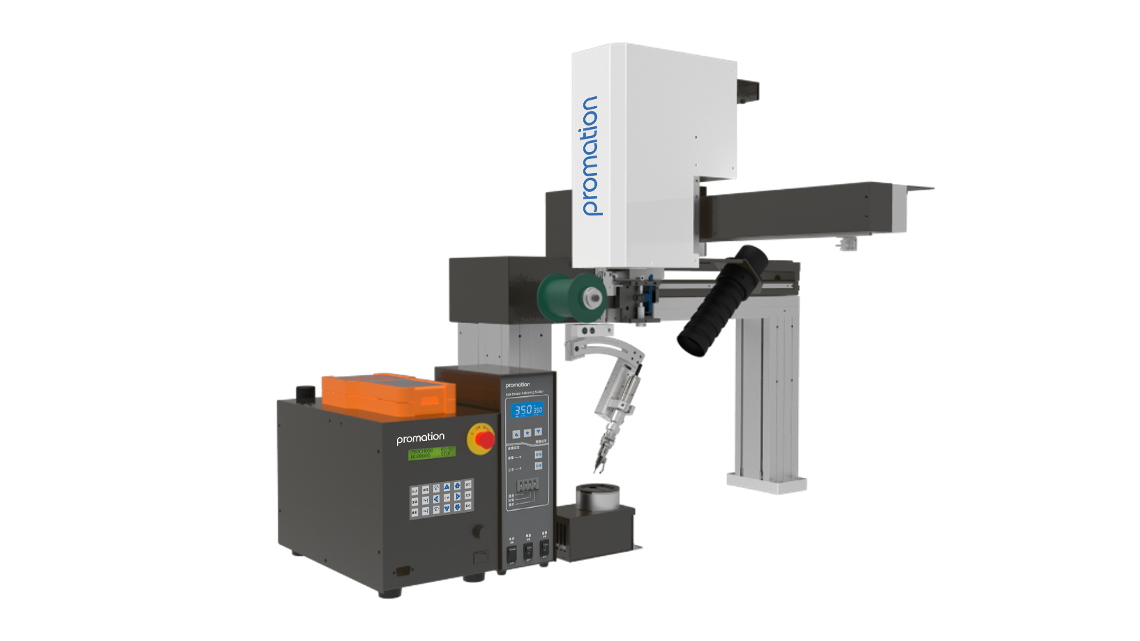 The 9354NA Series of Soldering Robots feature a robust Hot Iron system with a superior closed loop temperature sensing feedback. The Hot Iron is capable of delivering and maintaining a tip temperature with industry leading stability and accuracy. Two fine-toothed gears work to pull solder from the Solder Spool, while also perforating the surface of the Solder Wire; to allow for better out gassing of the Flux Core. Better out gassing results in less solder ball and flux splatter defects.