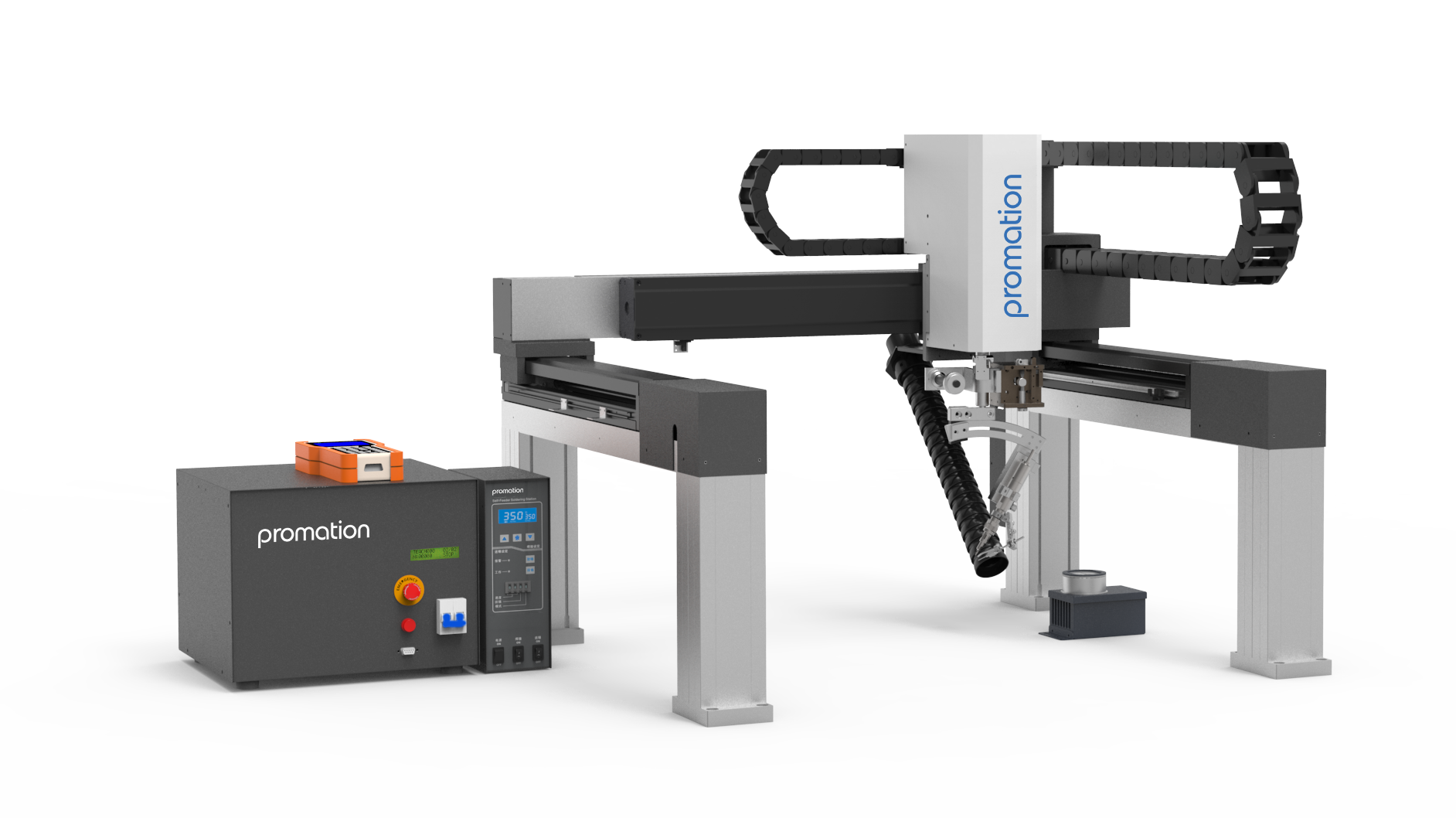 The 9454NA Series of Soldering Robots feature a robust Hot Iron system with a superior closed loop temperature sensing feedback. The Hot Iron is capable of delivering and maintaining a tip temperature with industry leading stability and accuracy. Two fine-toothed gears work to pull solder from the Solder Spool, while also perforating the surface of the Solder Wire; to allow for better out gassing of the Flux Core. Better out gassing results in less solder ball and flux splatter defects.